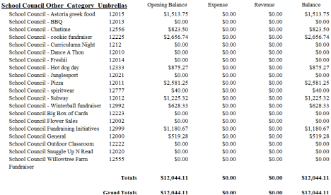 Confirm if there are any outstanding expenses i.e., Cookie Fundraiser, and transfer all balances to School Council Fundraising Initiatives (12999).